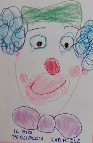 Oggi ci siamo dedicati al disegno dei pagliacci, per ora solo al viso. E' vero non sono amante delle schede già fatte ma in alcuni casi le uso solamente per far vedere le figure e così ho fatto stamattina.